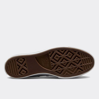 Esta plataforma de elevación de lona Chuck Taylor de techo alto tiene una parte superior de lona en el tono de salvia cumbre titular. Los icónicos parches de tobillo blancos con la marca Converse All Star negra se pueden encontrar en las paredes laterales mediales del zapato. Las plantillas beige de aspecto natural cuentan con la marca de texto Converse en negro. Las punteras de goma blanca y la puntera con patrón de diamantes son elementos familiares de las OG Chuck Taylor. Una entresuela de plataforma blanca de dos capas con detalles en negro y una suela exterior con textura marrón completan el diseño de estas zapatillas.