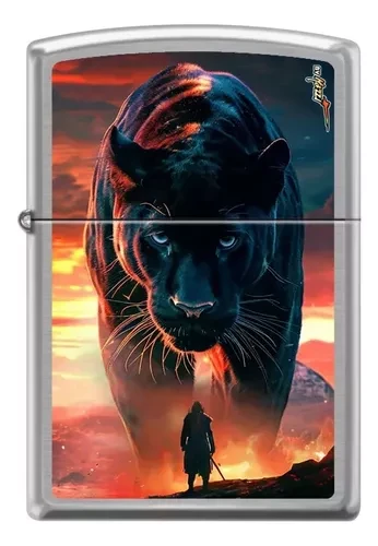 ENCENDEDOR ZIPPO COLOR PLATA CON IMAGEN DE UN PUMA.