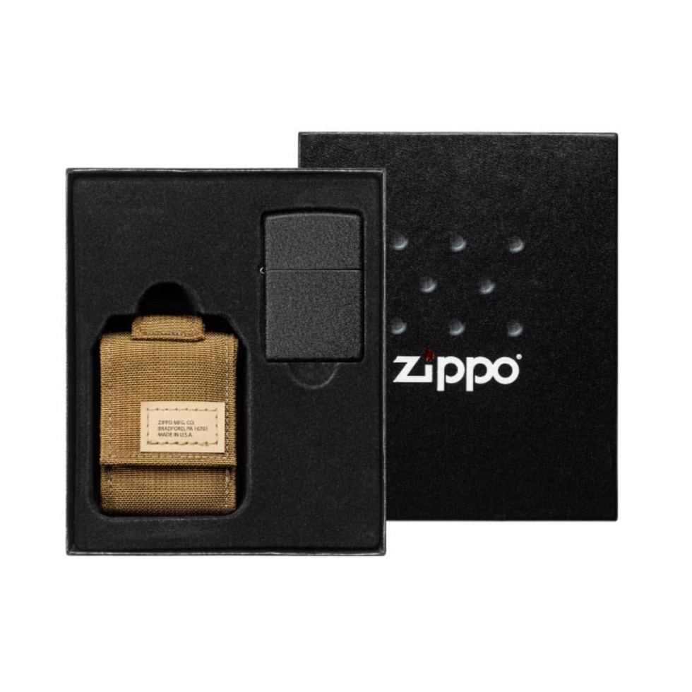 • Incluye bolsa táctica para encendedor y un encendedor negro agrietado resistente al viento